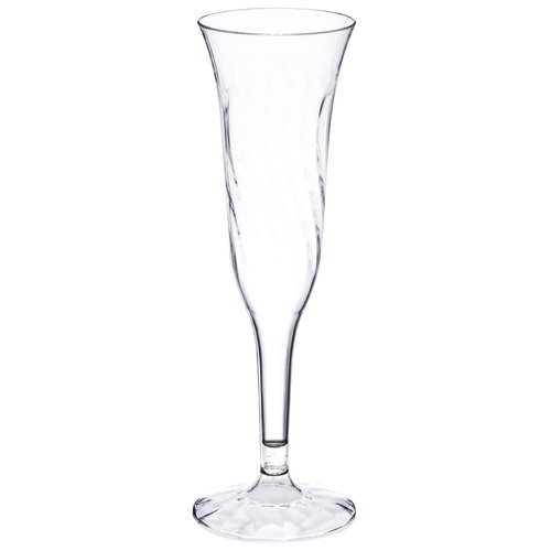 As you can see above, disposable champagne glasses range from simple, clear glass styles to more elegant diamond cut depending on your personal style. some affordable options as seen above. The bulk plastic champagne flutes generally hold 4 ounces or more depending on the style. And by checking out the wide variety you can also read the reviews from other customers to help you narrow down your choices.
